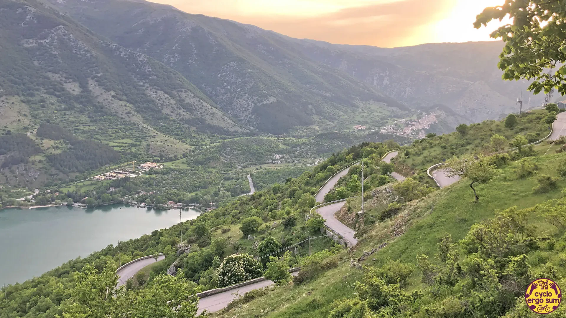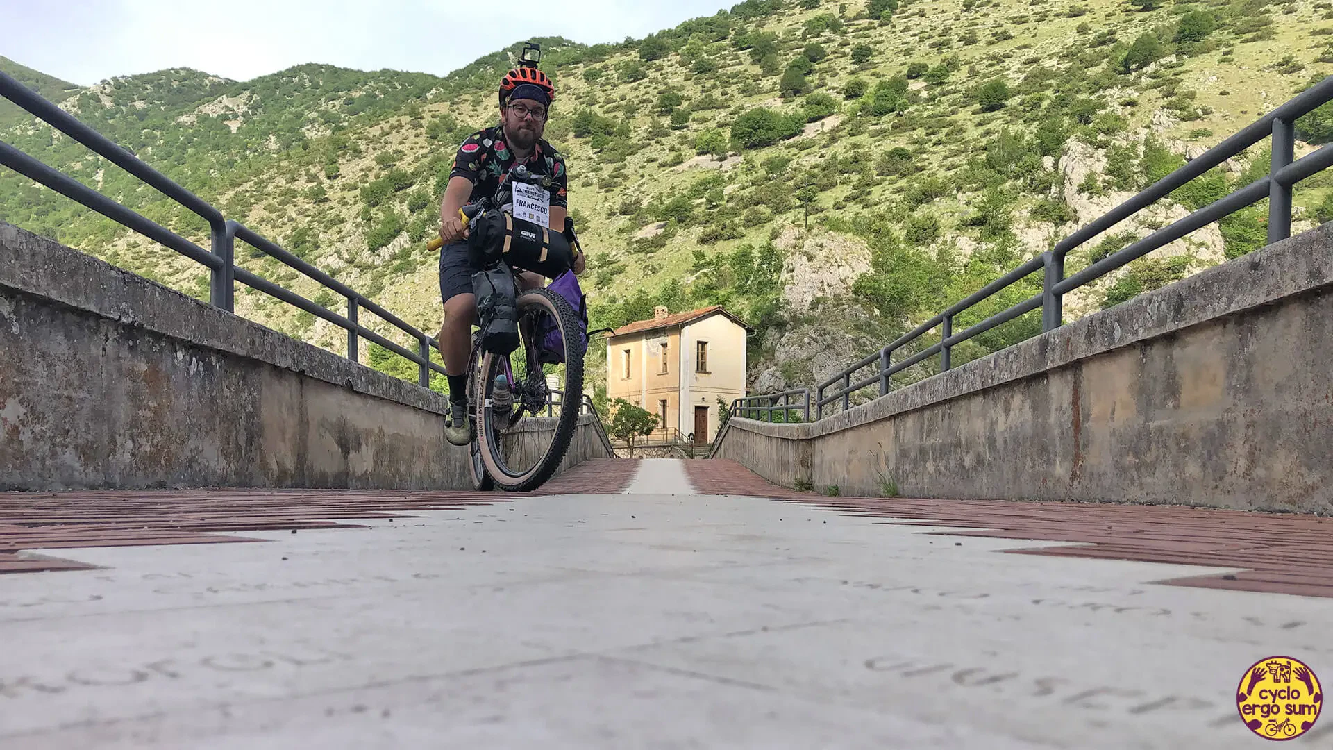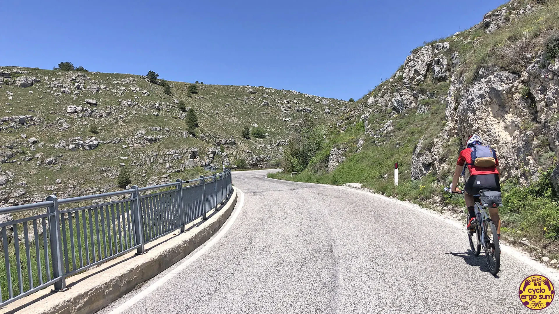 Dopo una sosta cena insieme a due partecipanti con i quali non ci facciamo mancare una buona birra e delle indimenticabili tagliatelle ai funghi, e dopo la notte in tenda a bordo lago, inizia un tratto di una spettacolarità unica: le Gole del Sagittario. La strada scende fino ad Anversa degli Abruzzi tra veloci curve, gallerie ed eremi antichi come quello di San Domenico. Ad Anversa ritrovo con piacere Simona, la Rossa a pedali, che mi accompagna pazientemente per un tratto di sterrate e salite fino a Goriano Sicoli, chiacchierando con grande piacere del suo Abruzzo e dei suoi viaggi.