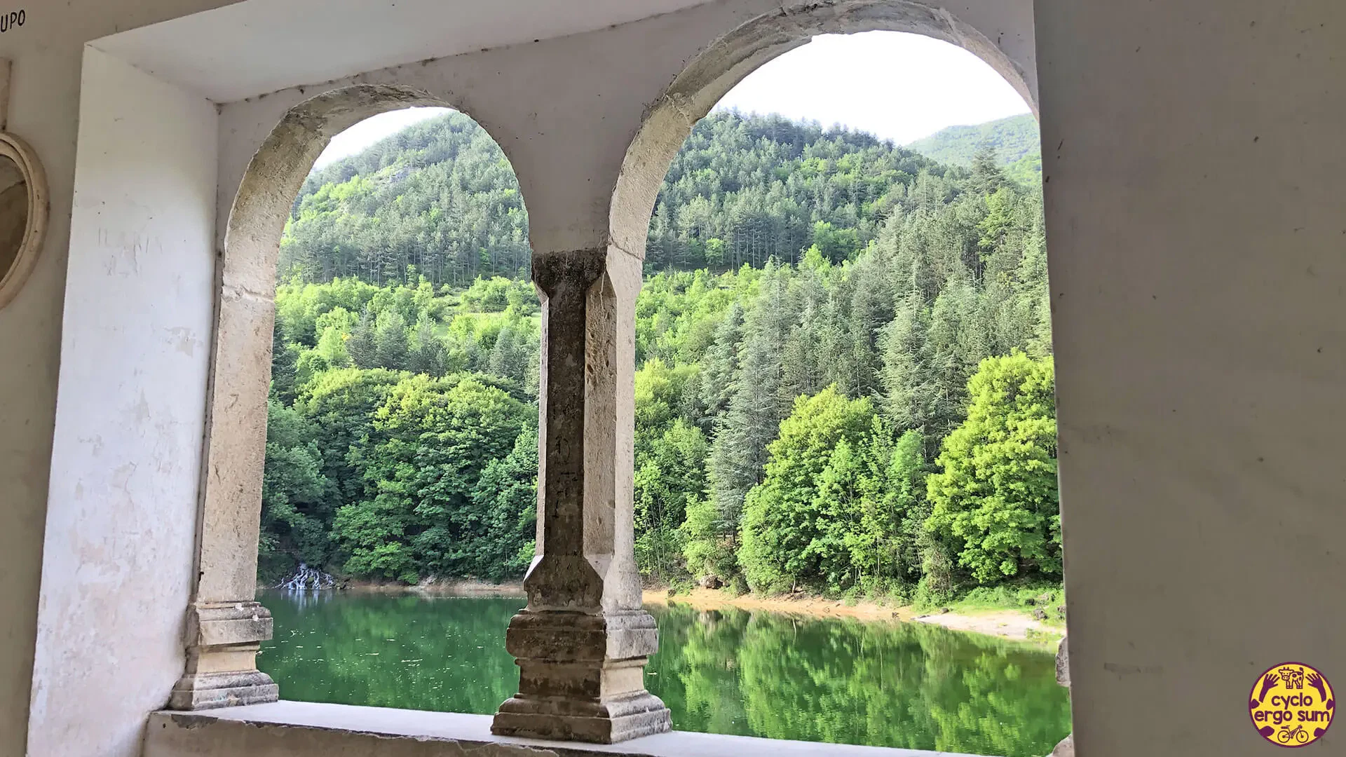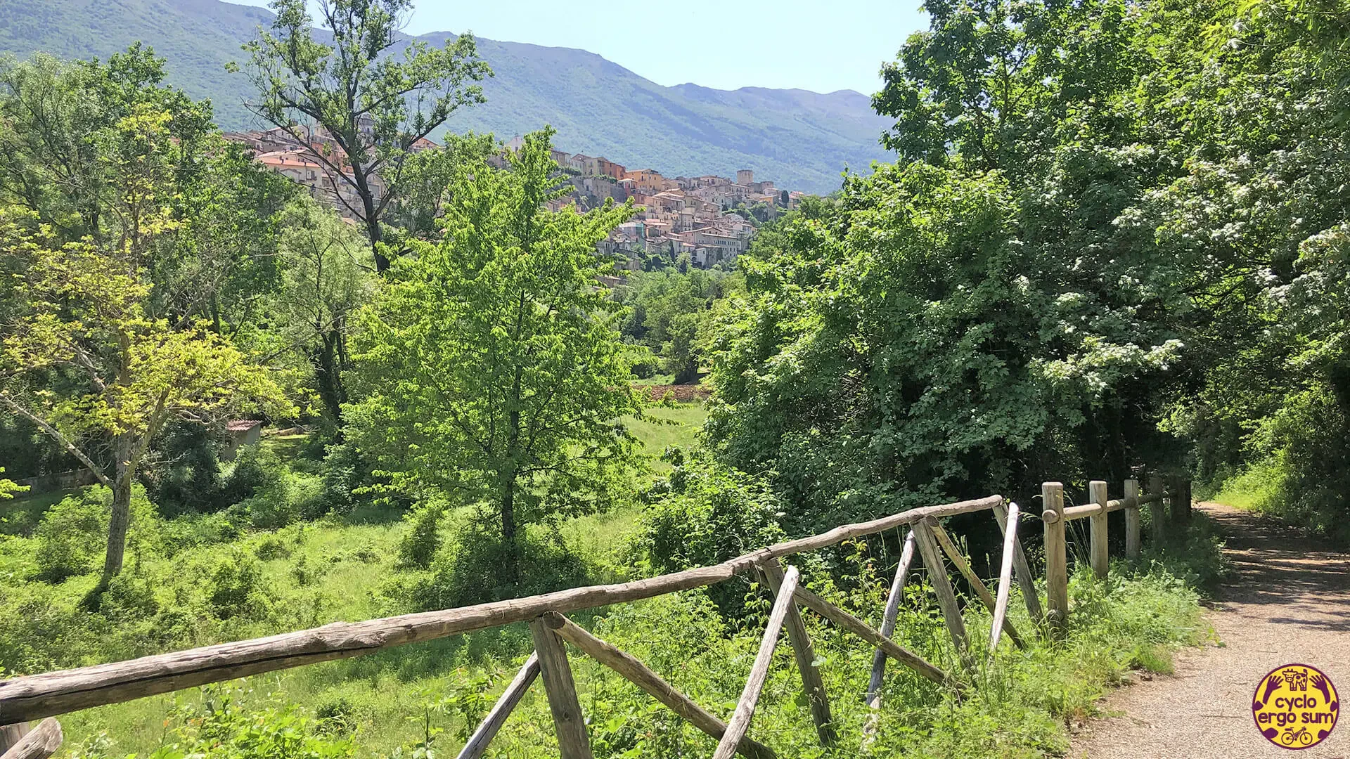 Dopo lo sforzo della salita per e dopo Rocca Pia, la bicicletta continua a viaggiare per arrivare alla splendida area della Montagna Spaccata, ottimo punto dove sostare e raccogliere le energie per la lunga salita degli Stazzi. In questa fase del percorso si alternano tratti nel fitto bosco ad ampie visuali su tutte le catene montuose circostanti. Dopo una serie di curve in discesa, anche piuttosto scoscesa e sconnessa, lo sguardo si apre sullo splendido Lago di Scanno: con la sua caratteristica forma a cuore, sembra un gioiello incastonato tra le montagne.