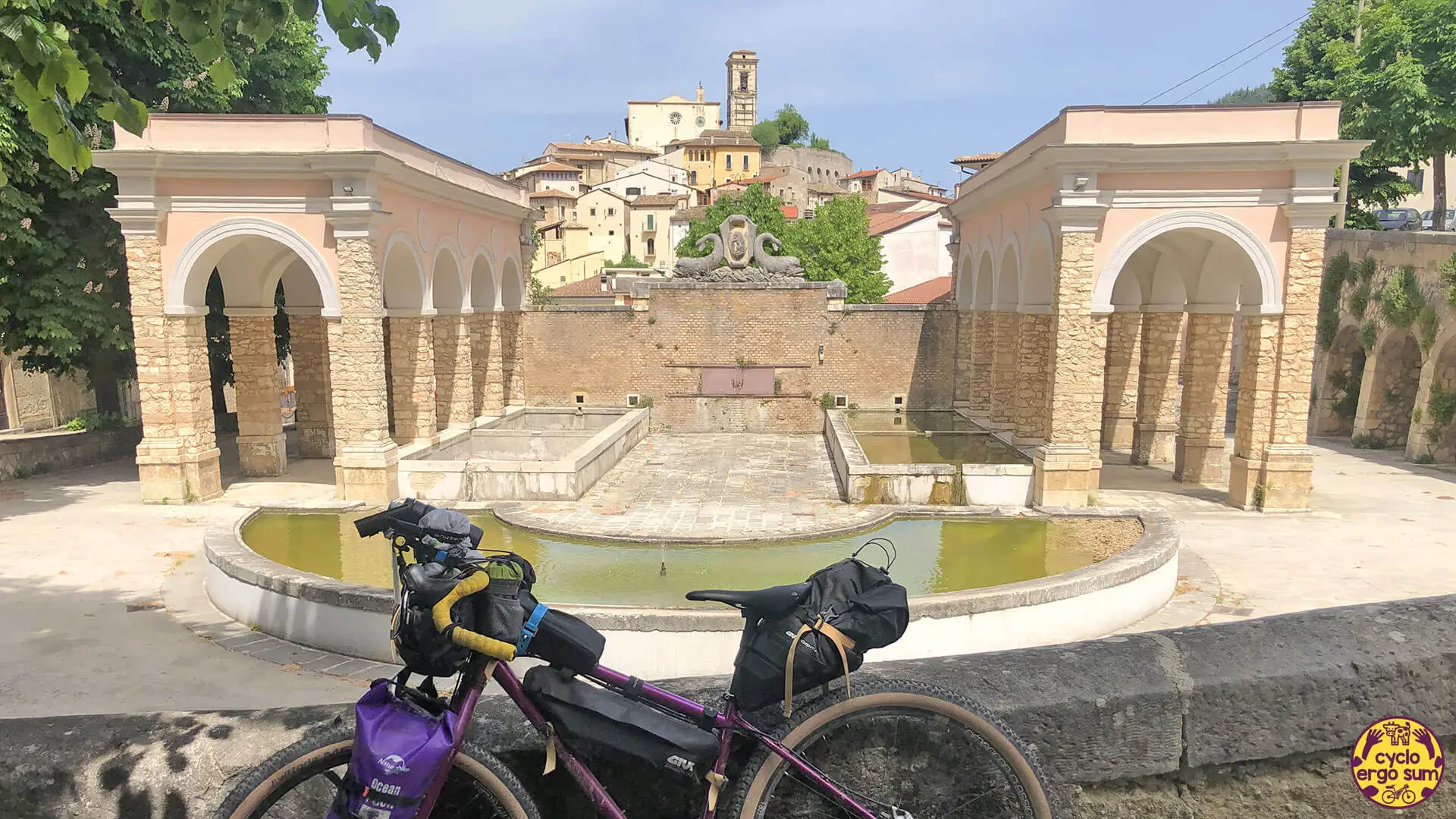 Il giorno successivo, recuperate le forze con una ristorante notte di sonno in tenda, comincia un lungo tratto pianeggiante che attraversa prima il centro storico di Popoli e poi quello di Sulmona, passando sotto l’acquedotto romano di Piazza Garibaldi, senza scordare la sosta gelato inclusa nel pacco gara.