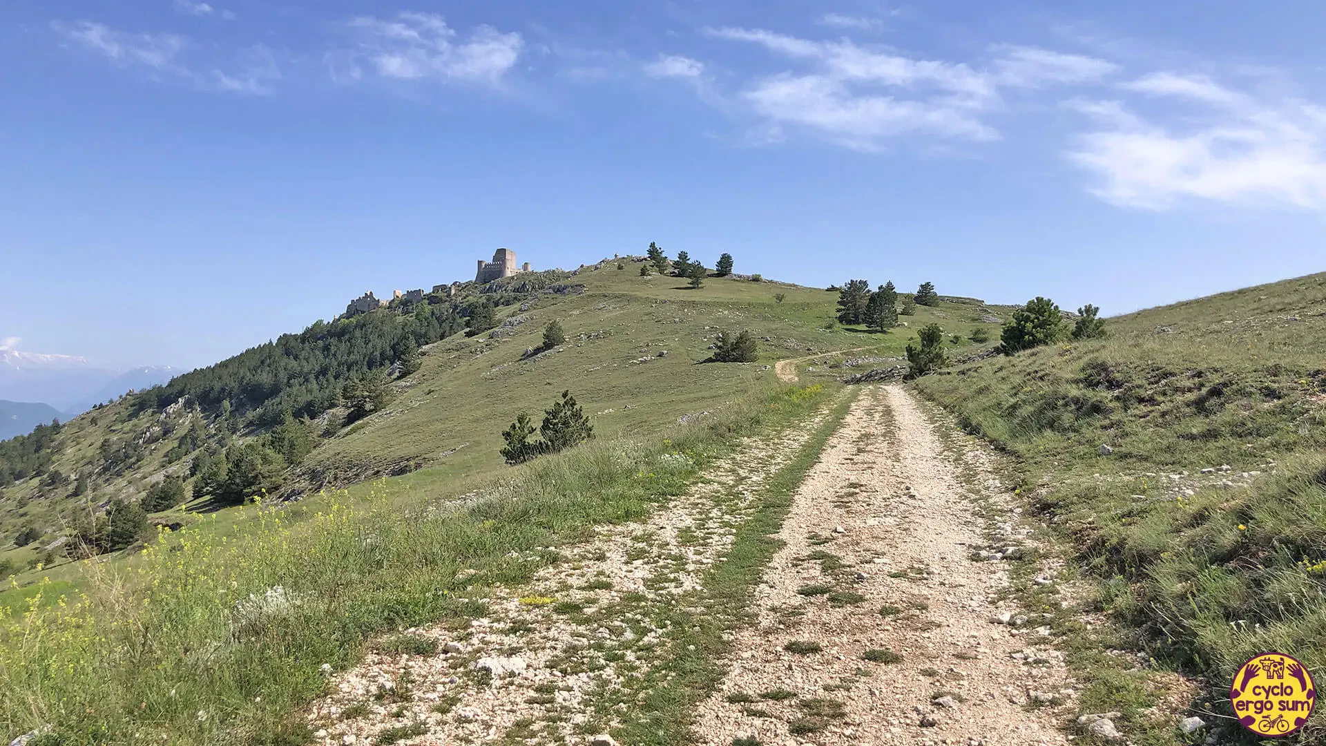 Iniziano così 240 chilometri di sentieri, ampie strade sterrate e passaggi all’interno di borghi unici, picchiate fantasmagoriche e rampe molto impegnative. Il percorso lungo prende il via esplorando le zone del Parco del Gran Sasso e Monti della Laga, in particolare gli splendidi borghi di San Demetrio ne’ Vestini, e poi Santo Stefano di Sessanio e Rocca Calascio, raggiunti attraverso la spettacolare Via Piana, dove una lacrimuccia esce sempre con grande facilità.