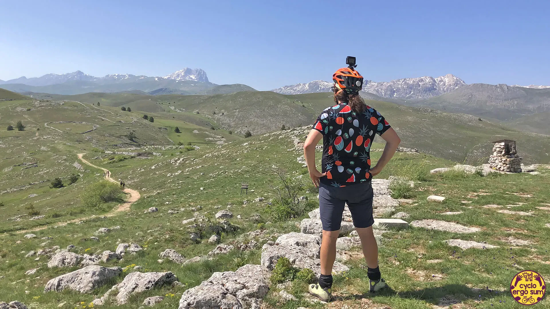 Trattandosi di un trail di maggio, l‘abbigliamento scelto non comprendeva particolari accorgimenti per combattere il freddo, anche se l’escursione termica specialmente la sera si percepiva. Oltre alla giacca antivento per le discese e una manica lunga per la sera, tutti i capi erano i classici estivi da ciclismo, perché comunque di giorno il caldo si faceva sentire. Per quanto riguarda i pernottamenti, a parte quello prima della partenza e alla sera dell’arrivo, dove ho davvero apprezzato e gradito l’ospitalità di Roberto, ho scelto di affrontare questo trail nella maniera più genuina possibile, optando per la tenda e il campeggio wild quando possibile, e quindi una prima notte all’Agricampeggio di Bussi sul Tirino e la seconda in uno spiazzo di Scanno, non lontano dal lago.