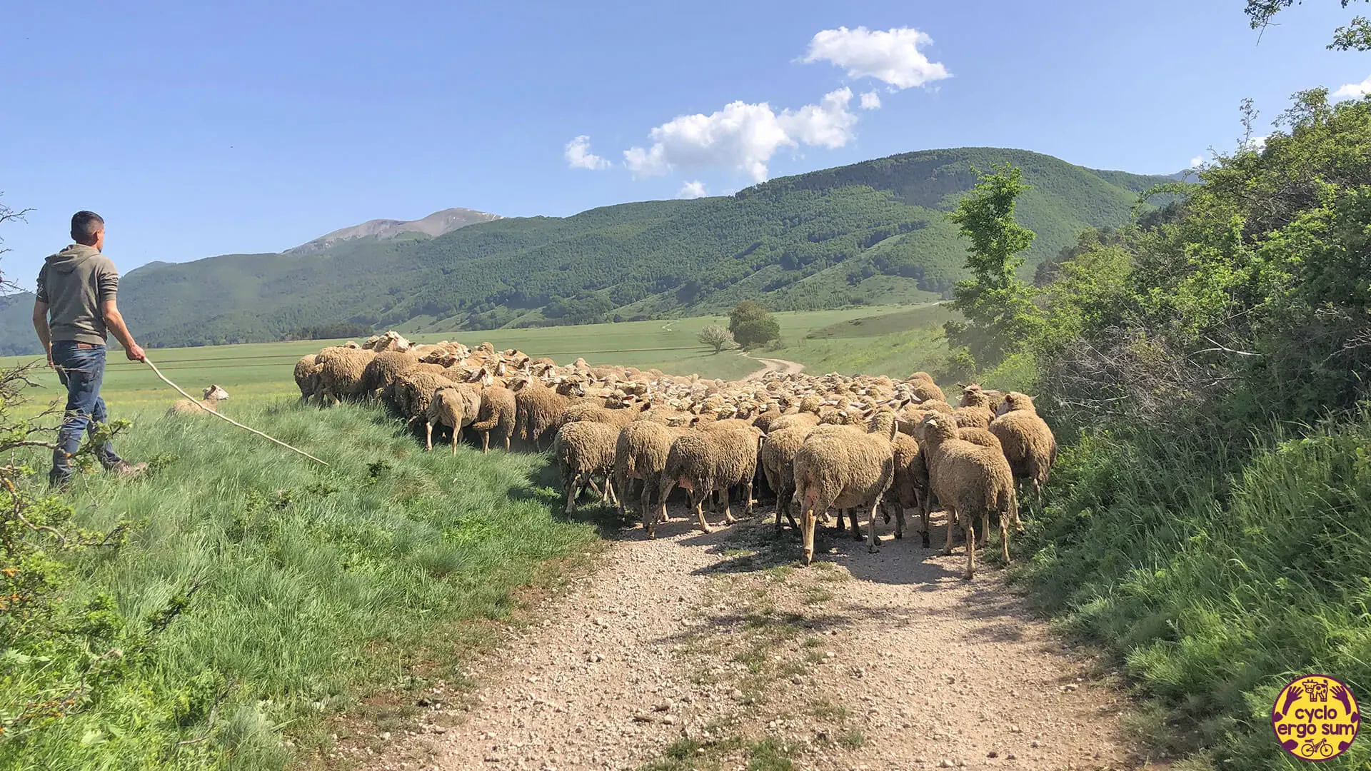 Ancora qualche saliscendi per giungere ai piedi del Monte Sirente, simbolo del Parco Regionale del Sirente Velino; la strada riprende a salire e salire senza sosta fino ad arrivare ai Prati del Sirente, una conca carsica di 3 chilometri situata al di sotto di ampie faggete che fanno da base alla montagna.