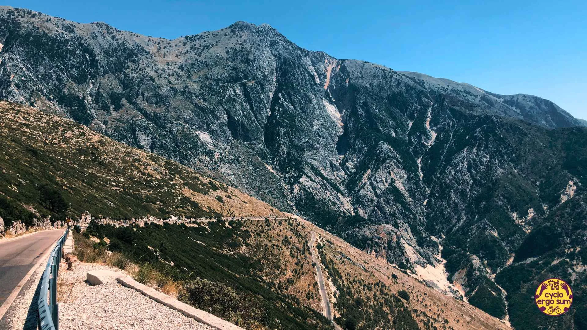 Dopo una nottata spesa a sudare tutte le tossine del mondo, sono (quasi, forse per niente) pronto a ripartire. Il Passo di Llogara è una delle sfide più impegnative del viaggio: 20 km di salita con pendenze tra l’8% e il 12%. Il panorama al valico è mozzafiato, con la vista del Mar Ionio che si estende all’infinito.