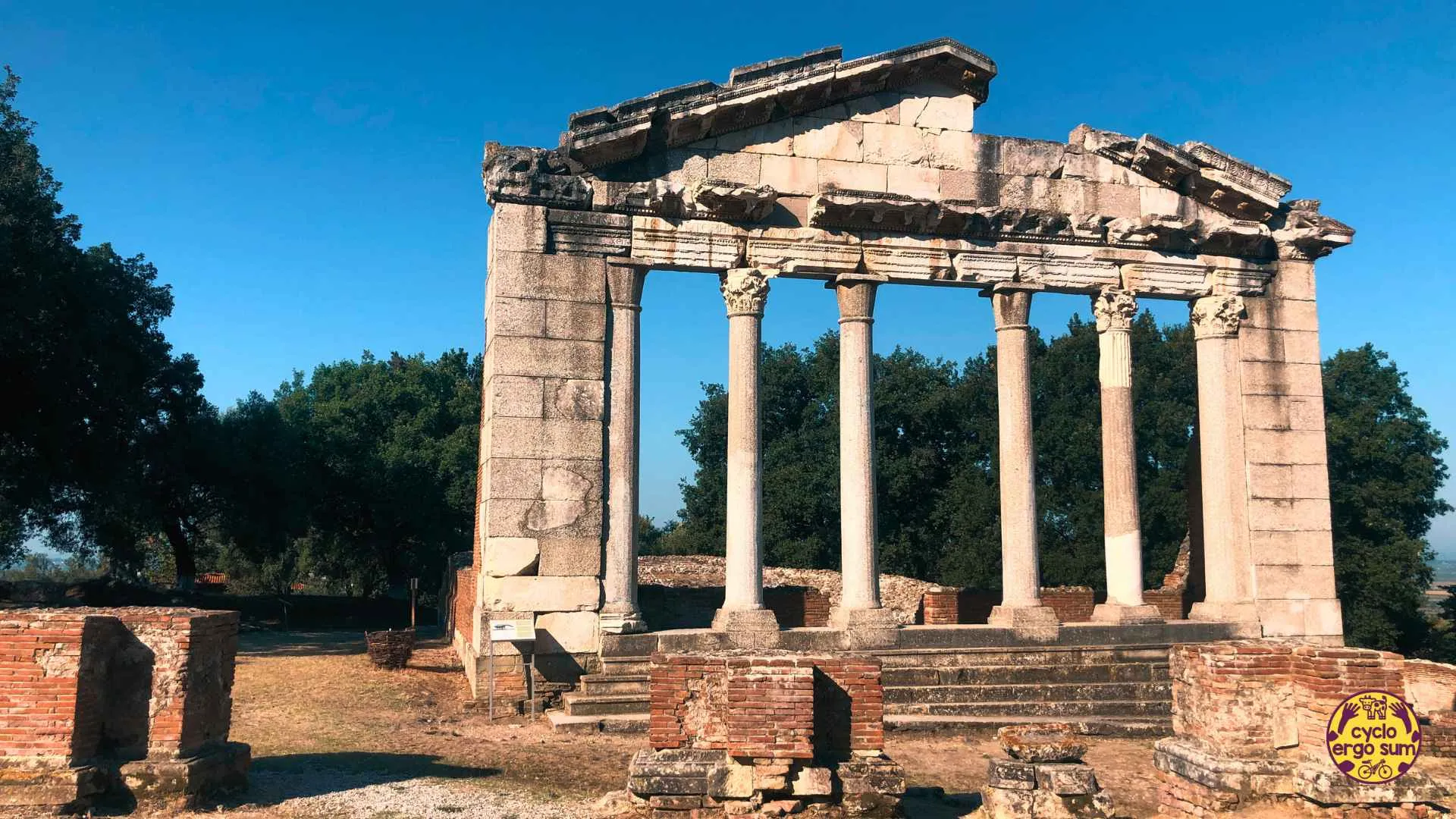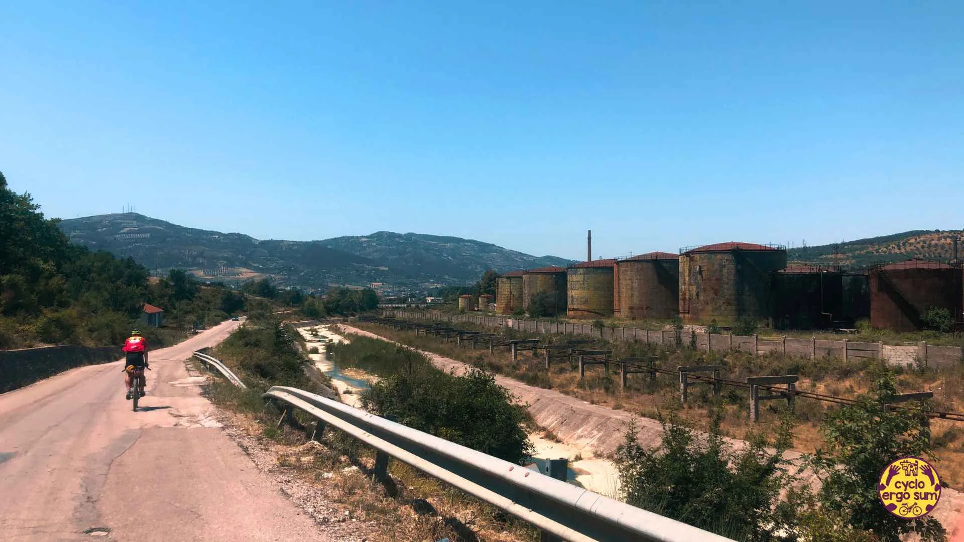 Lasciamo Berat affrontando subito una salita impegnativa, ma il paesaggio ci ripaga della fatica. La strada che immaginiamo provinciale o statale a un certo punto diventa sterrata, e inizia il divertimento. Ci lasciamo trasportare dalle forme del terreno e ci divertiamo così attraversando piccoli paesini, Galline, Mbeshjove, Cfir e la spettrale Ballsh, dove ci riposiamo pranzando sotto un’illusoria tenda bianca. Siamo ormai bruciati e devastati. Tra sterrati polverosi e tratti di asfalto piacevoli, raggiungiamo Fier, dove ci concediamo una sontuosa abbuffata. Famosa per il sito archeologico di Apollonia e fondata nel VI secolo a.C. da coloni greci, Apollonia conserva ancora oggi testimonianze significative del suo glorioso passato, tra cui il monastero di Ardenices.