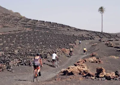 Pedalando in senso antiorario calpesteremo la ghiaia vulcanica verso Órzola, l’isola de La Graciosa, lo spettacolare Mirador del Rio, l’antica città di Teguise, la californiana Famara, il Parque Nacional de Timanfaya e il pittoresco sud, tra hotel abbandonati, il Monumento de los Ajaces e le distese di vigneti di La Geria. Non mancheranno vini tipici, ottimo cibo fresco, il tutto sempre con temperature gradevolissime, un po’ di vento e pedalando in un paesaggio lunare.